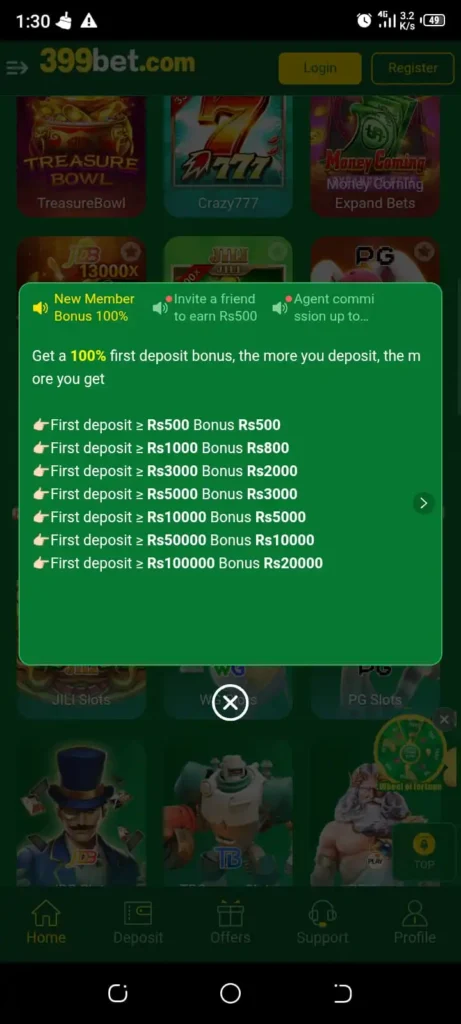 Rewards are also given to the players to use in betting and increase their winning chances. 399 Pak game uses the advanced security measures to protect the data of its users and transaction information. Players can choose a feasible payment method for deposit or withdrawal purposes. It has the strength to provide a diverse selection of games to its users of every gaming level, from beginner to pro. Players can also get jackpots by winning more games.
