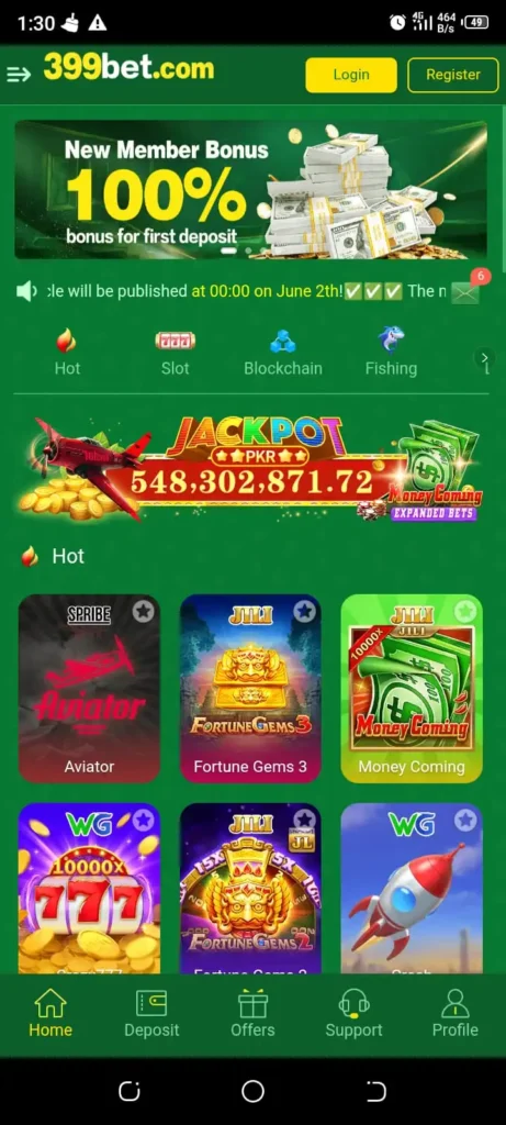 399PAK is the most used and appreciated gaming app in the world of online gaming. It is a casino-style game with a vast variety of games, including Hot Games, Favorites, Slots, Live Casino, and Sports.
