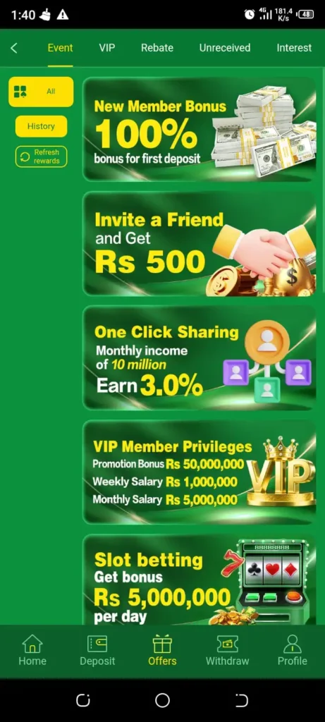 - Referral bonus: You can get a commission if you invite more people from your circle to join this platform and get real money.
